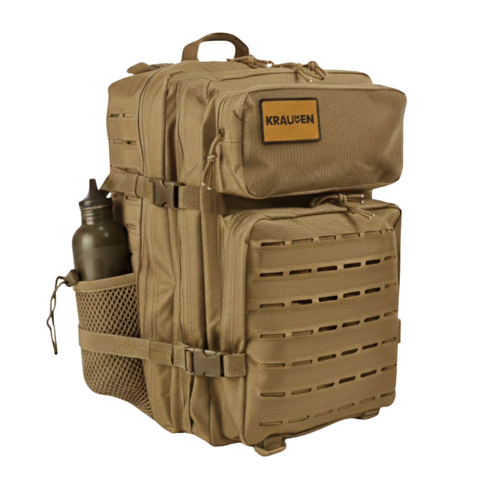 La mochila táctica Krauven Bravo es la opción preferida para quienes requieren máxima capacidad de carga sin sacrificar resistencia ni estabilidad. Con sus 45 litros, este modelo está diseñado para operaciones prolongadas, travesías de varios días y escenarios donde es imprescindible llevar equipamiento voluminoso de forma segura y organizada.